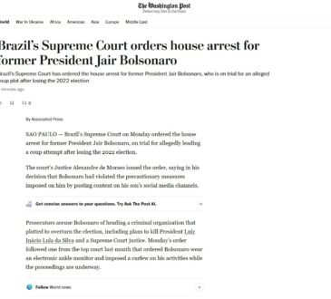 ultimas noticiasBolsonaro tem prisão domiciliar decretada: veja a repercussão na imprensa internacional | Mundoitalocorreiaoficial@gmail.com3 meses ago87 de 7 O ex-presidente da República, Jair Bolsonaro, deixa a sede do Partido Liberal (PL), em Brasília, para ir para...