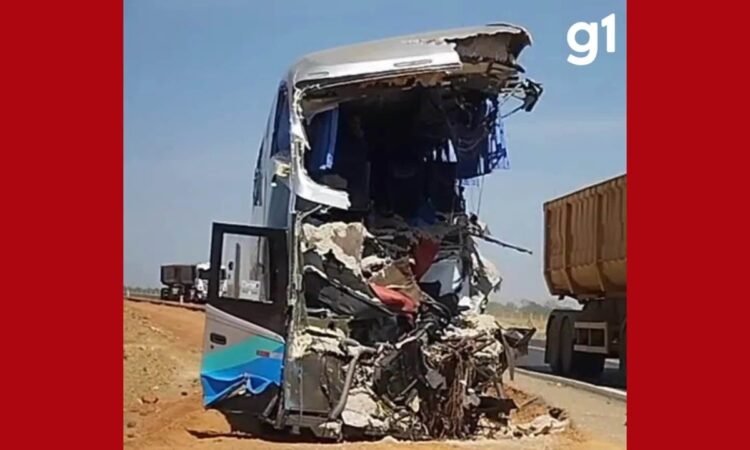 Veja como ficaram ônibus e carreta envolvidos em batida com 11 mortos em MT